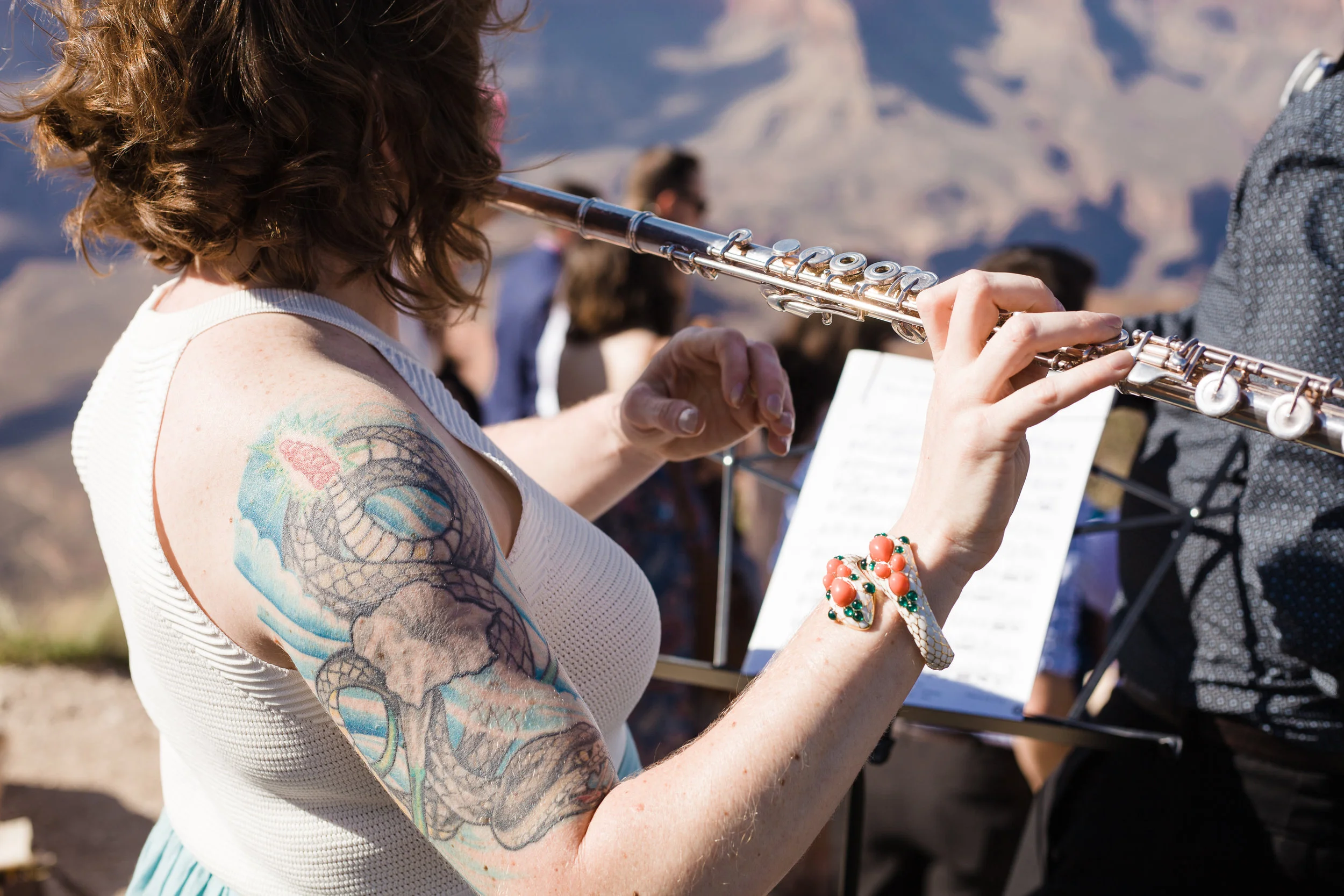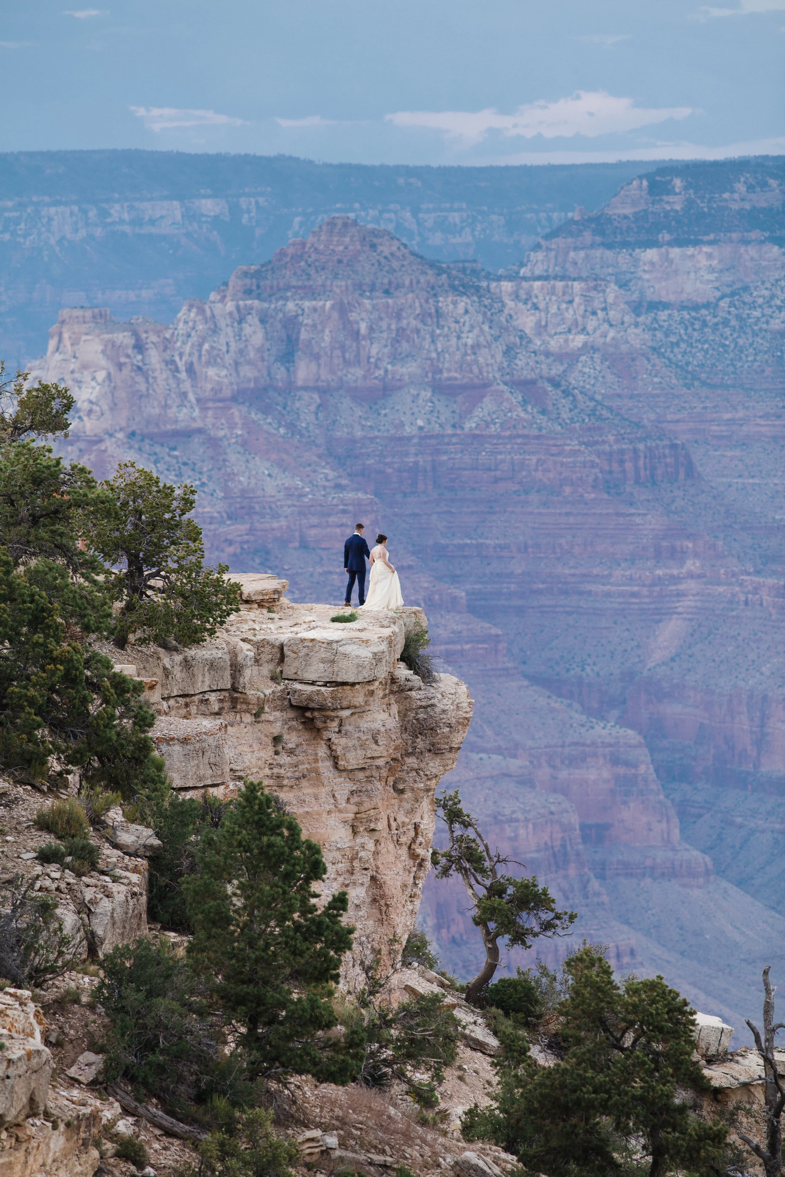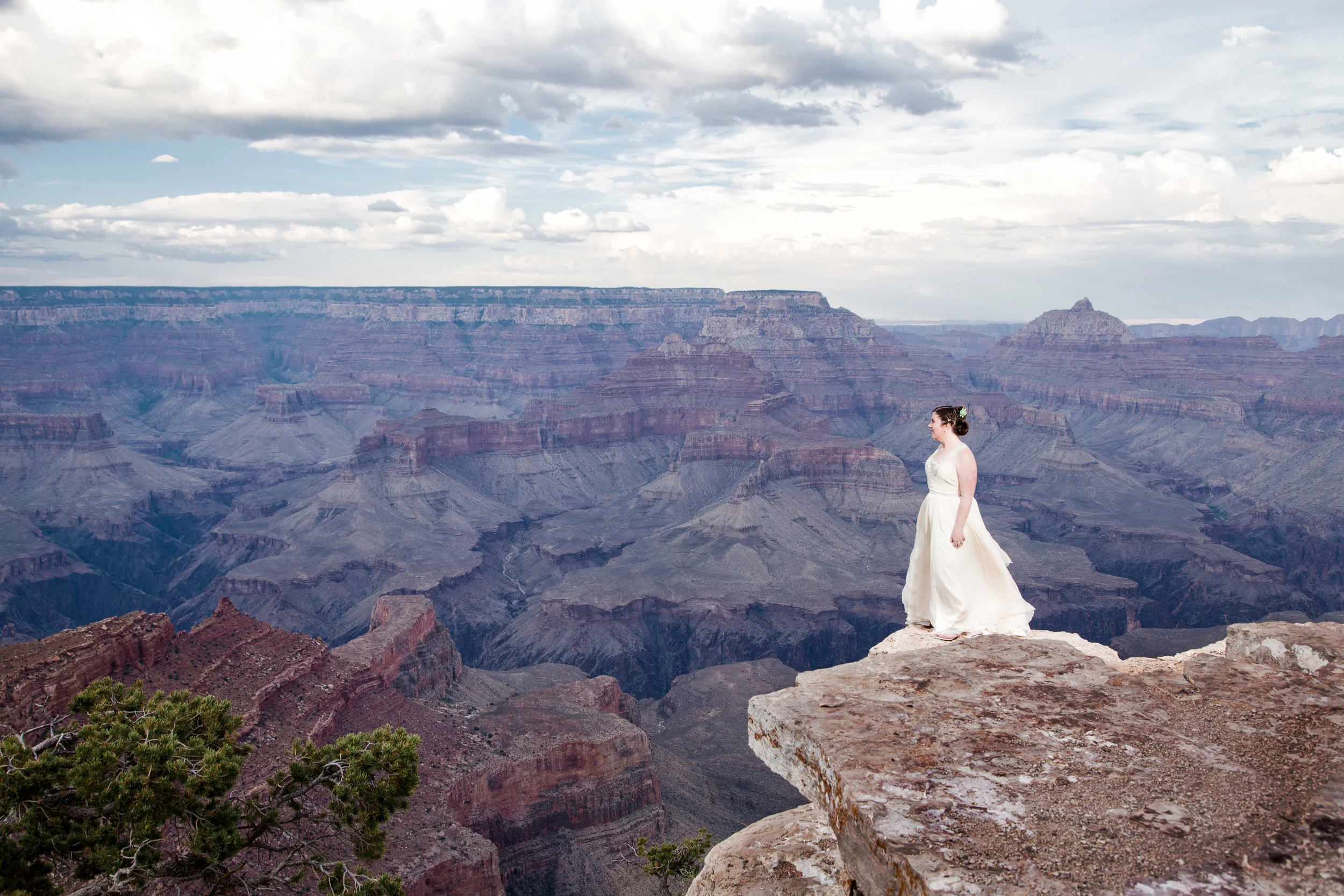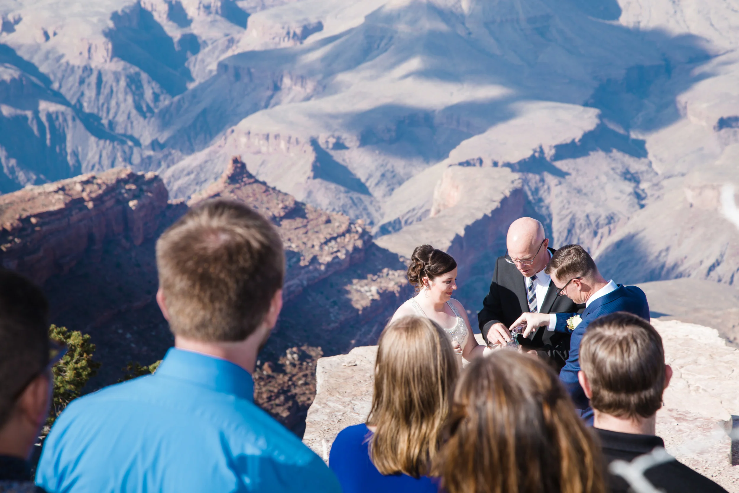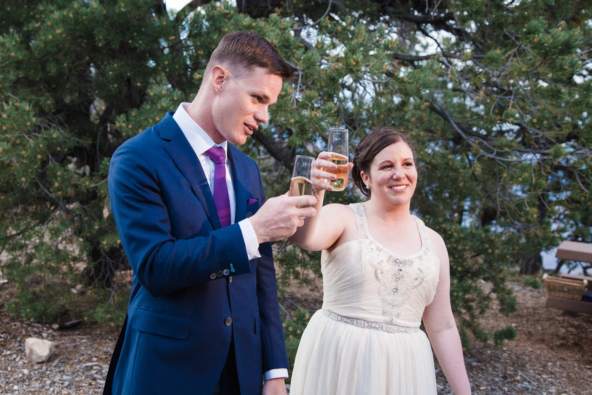 Christin and Jeremiah got hitched at Shoshone Point on the south rim of the Grand Canyon. It’s an epic spot and Christin wanted some epic photos of her wedding day. So that’s what we did! Jeremiah is a “bomb guy” in the U.S. Army. That is in no way a technical term for what he does, and isn’t meant to belittle the job in any way, but it does suggest he might have nerves of steel. And he was very calm and collected while getting ready to tie the knot. However, standing at the edge of the Grand Canyon isn’t super comfortable for everyone. Many people have a healthy fear of heights. Count Jeremiah as one of those people. But you would never know. He made it look effortless. Christin and Jeremiah’s wedding was beautiful and they were surrounded by loving and supportive friends and family. All in all, a fantastic day. Enjoy!